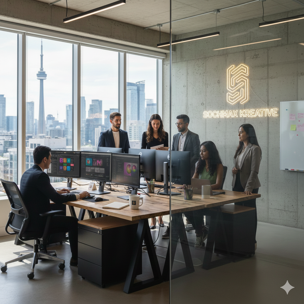Sochmax Kreative is a leading creative agency based in Toronto, Canada. With 5 years of experience in the industry, we operate as your one-stop digital partner, specializing in crafting high-performing, visually stunning websites, eye-catching branding, and impactful digital marketing campaigns. From custom web design and SEO optimization to logo creation, we are committed to building digital foundations that drive real business growth